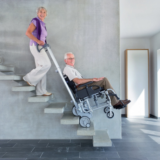 Вы ищете мощное устройство для подъема по лестнице, которое идеально сочетается с вашей коляской? Scalamobil S35 - это отличное устройство для подъема по лестнице, которое идеально сочетается с большим количеством колясок. Alber Scalamobil S35 оснащен инновационным ErgoBalance, ручки которого были разработаны специалистами для обеспечения безопасной и простой работы. Встроенные датчики IQ обеспечивают дополнительный комфорт и безопасность. С Scalamobil S35 лестница не является препятствием. Scalamobil S35 построен с запатентованным подъемным механизмом. Запатентованный электрический подъемный механизм позволяет Scalamobil преодолевать даже узкие и винтовые лестницы из любого материала. Усилия обслуживающего персонала незначительны. Четыре автоматических предохранительных тормоза на колесах надежно перемещают Scalamobil по любым лестницам. Патентованные датчики IQ поддерживают пользователя и обеспечивают очень безопасный и, главное, комфортный подъем или спуск. Благодаря мягким, устойчивым к истиранию колесам Scalamobil исключает повреждение лестницы. Alber Scalamobil S35 также прост и безопасен в эксплуатации. Эргономичная форма новых ручек ErgoBalance на Scalamobil была разработана специалистами для обеспечения простой и безопасной работы. Мягкая подкладка на задней части ручки в сочетании с удобным переключателем управления гарантирует более длительное использование без проблем. Все основные функции мгновенно видны на дисплее. Ручки можно регулировать по высоте и ширине, идеально подстраиваясь под сопровождающего человека.