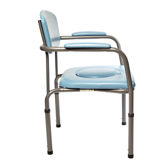 Кресло-туалет Omega Eco H440 создано для максимальной функциональности, комфорта и эстетики. Механизм фиксации позволяет плавно регулировать высоту сиденья примерно от 405 до 585 мм, чтобы адаптировать его к росту пользователя. Инновационный вырез с вкладышем облегчает использование кресла как над существующим унитазом, так и автономно. Гибкий держатель для санитарного ведра позволяет вынимать его сзади или сбоку, что удобно для разных жилищных условий. Легкий современный дизайн подходит для домашней обстановки, а специальное покрытие легко очищается.