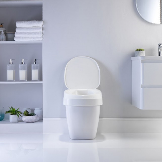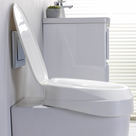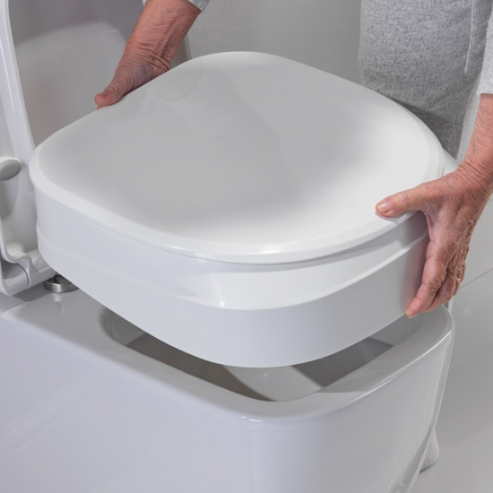 - Поднимает сиденье на 10 см, улучшая доступ к унитазу и облегчая посадку/вставание.