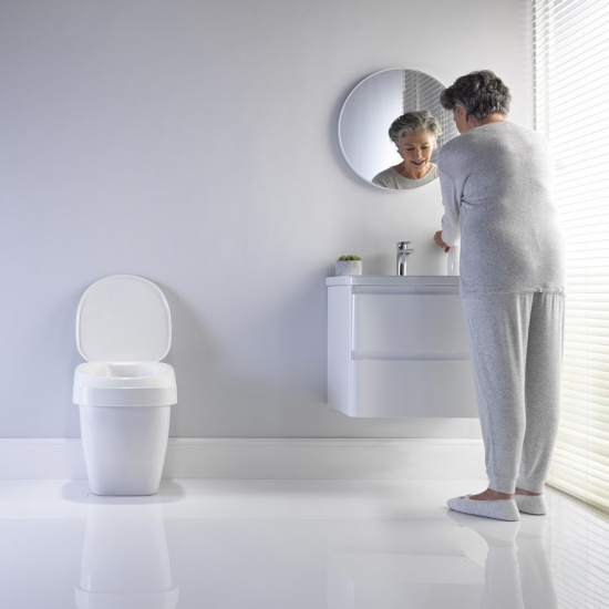 Подъёмное сиденье AT90 Ergo предназначено для людей с ограниченной подвижностью. Анатомическое, контурное сиденье с 5-градусным наклоном помогает легче садиться и вставать. Благодаря нескользящей поверхности снизу изделие надёжно удерживается на чаше, не требуя зажимов или винтов. Сиденье изготовлено из 47 % переработанного полипропилена, не содержит латекса и устойчиво к коррозии, поэтому легко моется. Опциональная крышка обеспечивает дополнительную гигиеничность и эстетичный вид. Благодаря малому весу его можно быстро снять и хранить, когда оно не используется.